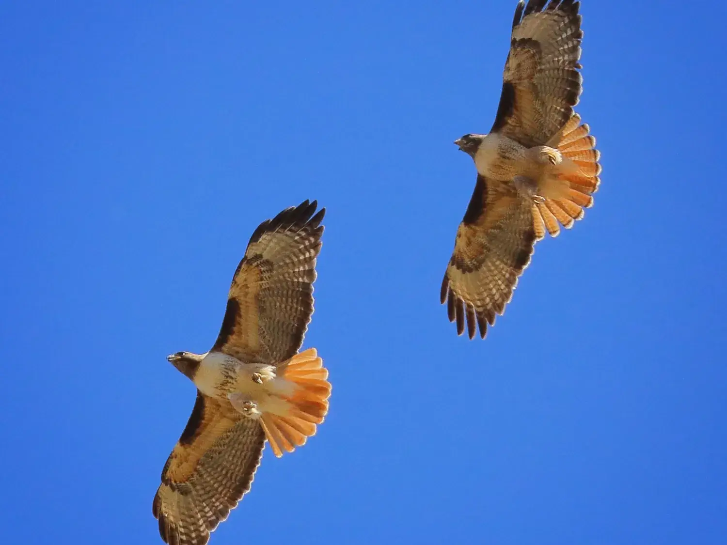 Red-tailed hawks live for the show – their mating ritual is basically an aerial tango - involving meeting mid-air and spiraling down together. Like humans, they also win over their partners with delicious, shared meals.