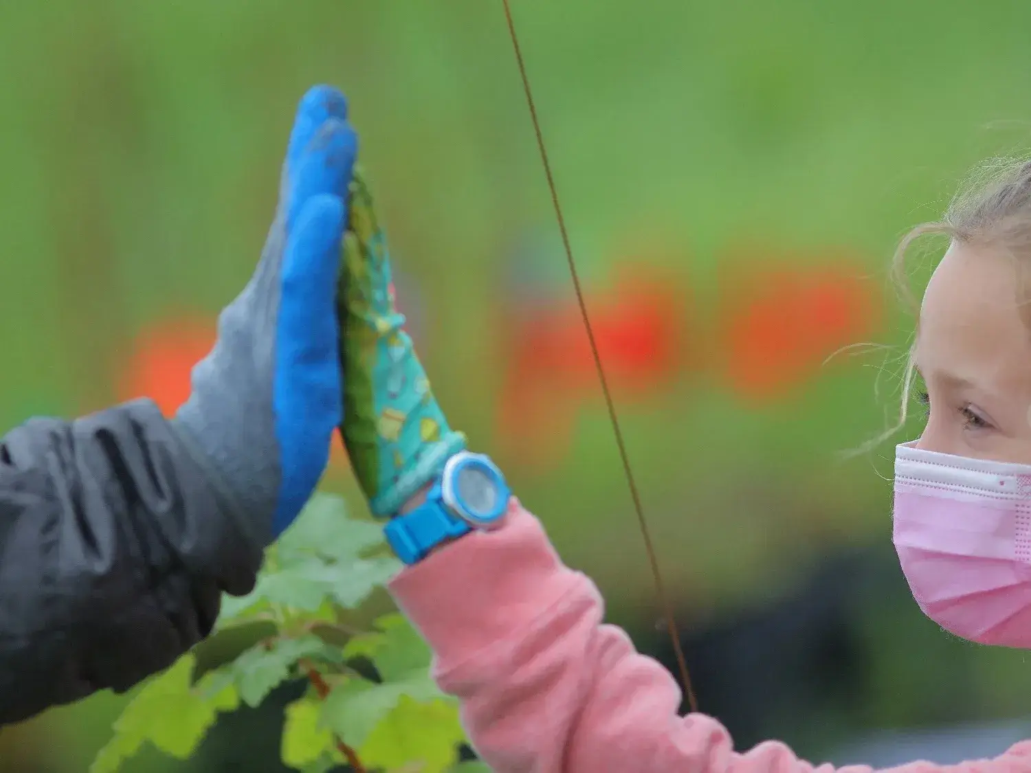 And the enthusiasm they displayed during their in-class lesson continued during the planting itself. After the instructional presentation, students excitedly grabbed their plants in nursery pots and brought them to the site, wild strawberries being a fan favorite, with holly-leaf cherry as a close follow-up. As they planted, Point Blue and Authority staff walked around offering support.