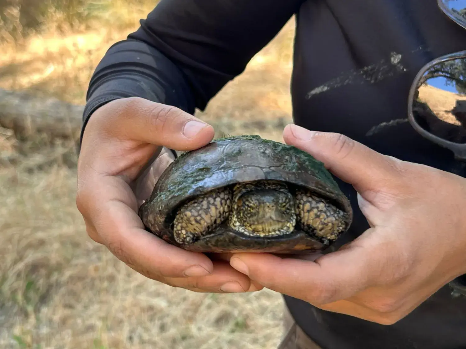 Restoration of these ponds is important because stock ponds like these have become some of the last remaining habitat for sensitive aquatic species like [California red-legged] frogs and [Northwestern pond] turtles. Historically, [these species] would have been very populous in the valley, but because we’ve developed a lot of our valley floor habitat for agriculture and businesses and homes, spaces like these in the foothills are some of the last remaining habitats, even though they’re artificial.