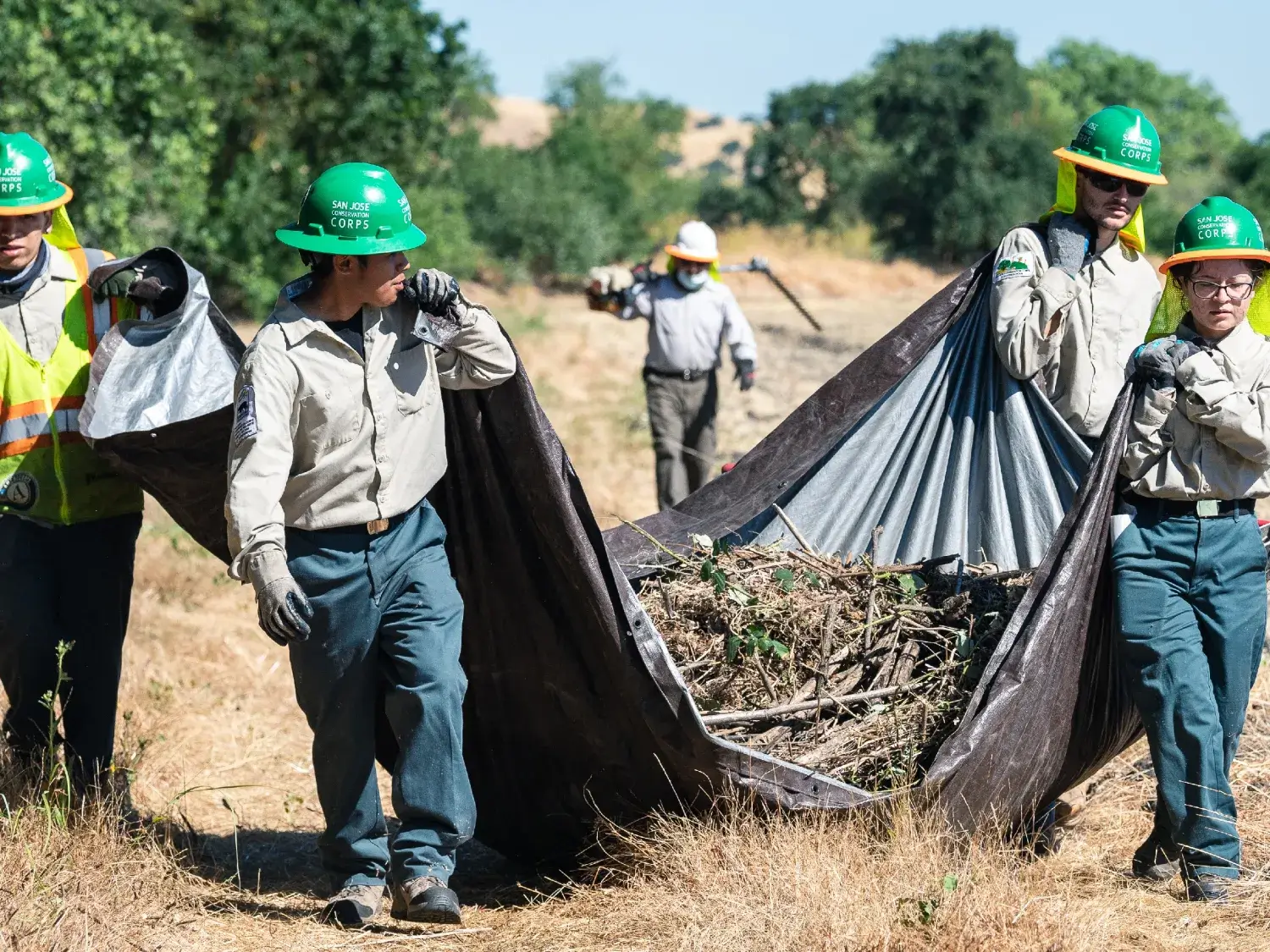 In the first week, a restoration team from the San Jose Conservation Corps cleared thickets of invasive plants known to crowd out native species, like poison hemlock. Hidden beneath all that hemlock were loads of trash, including more than 90 tires.